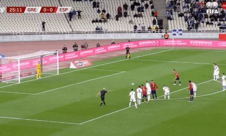 21'希腊队马苏拉斯打进一球,但进球因越位在先被取消