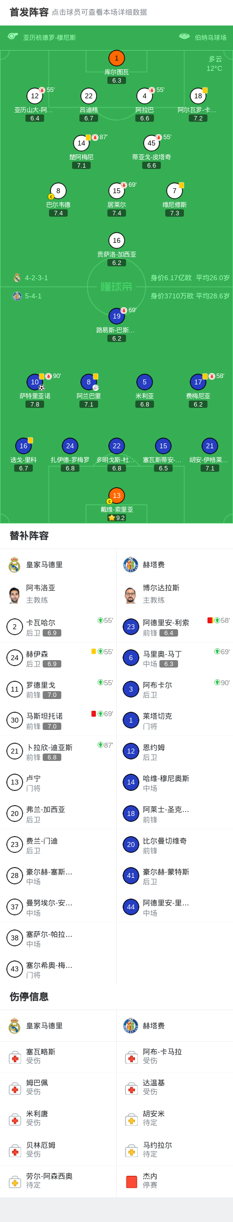 北京时间3月3日西班牙足球甲级联赛 联赛 第26轮,皇家马德里主场对阵赫塔费。上半场,维尼修斯单刀射门被门将挡出。随后,萨特里亚诺凌空抽射破门。下半场最后时刻,马斯坦托诺和利索相继被罚下。全场比赛结束,皇马0-1不敌赫塔费。