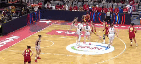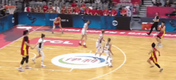 这一节中段,中国队的战术执行比较到位,防守端很有活力,抢断的效力提升了:这一个从防守到反击拿分的过程,很犀利,很流畅!